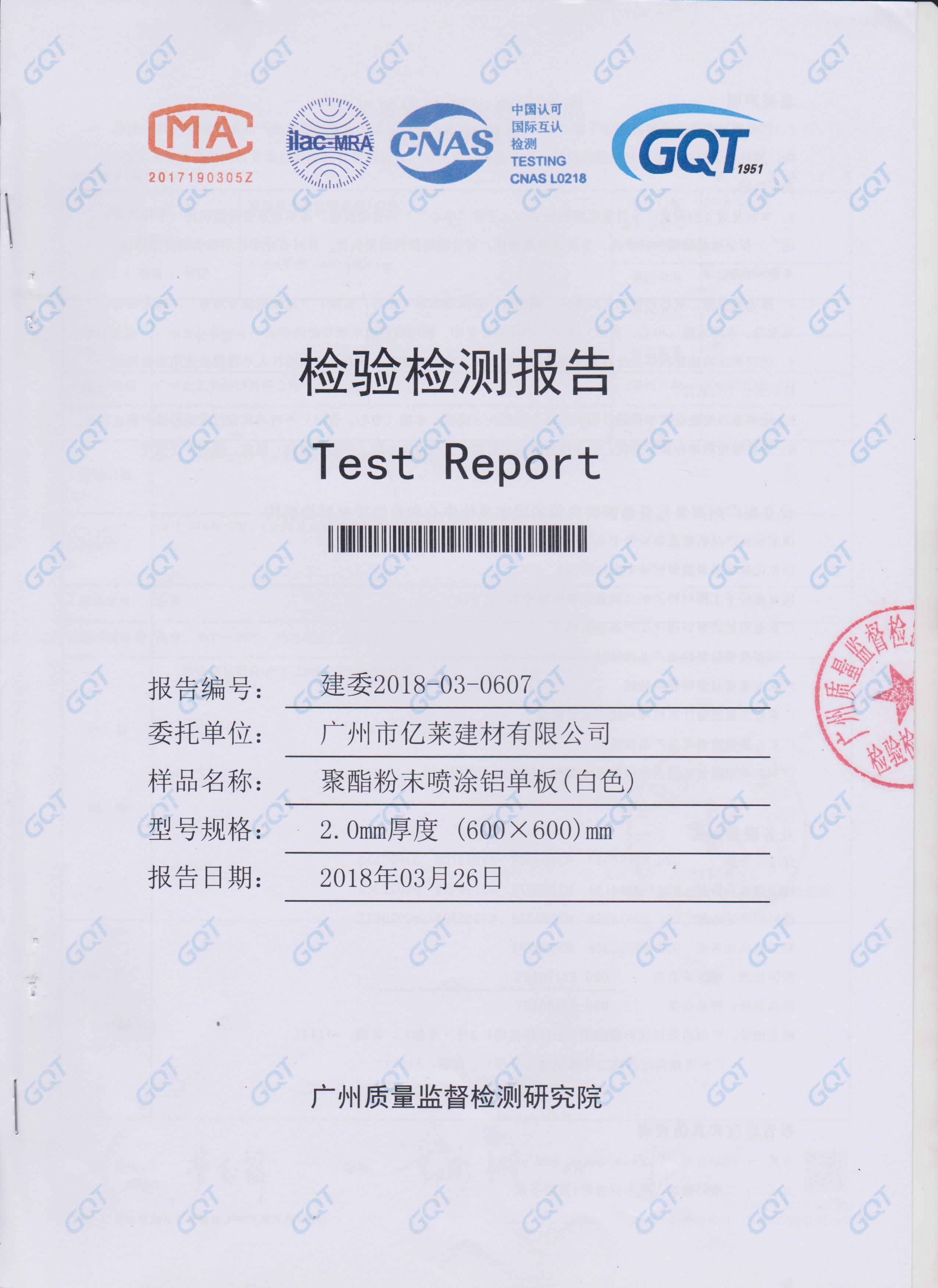 聚酯粉末噴涂鋁單板(白色)檢測(cè)報(bào)告-1