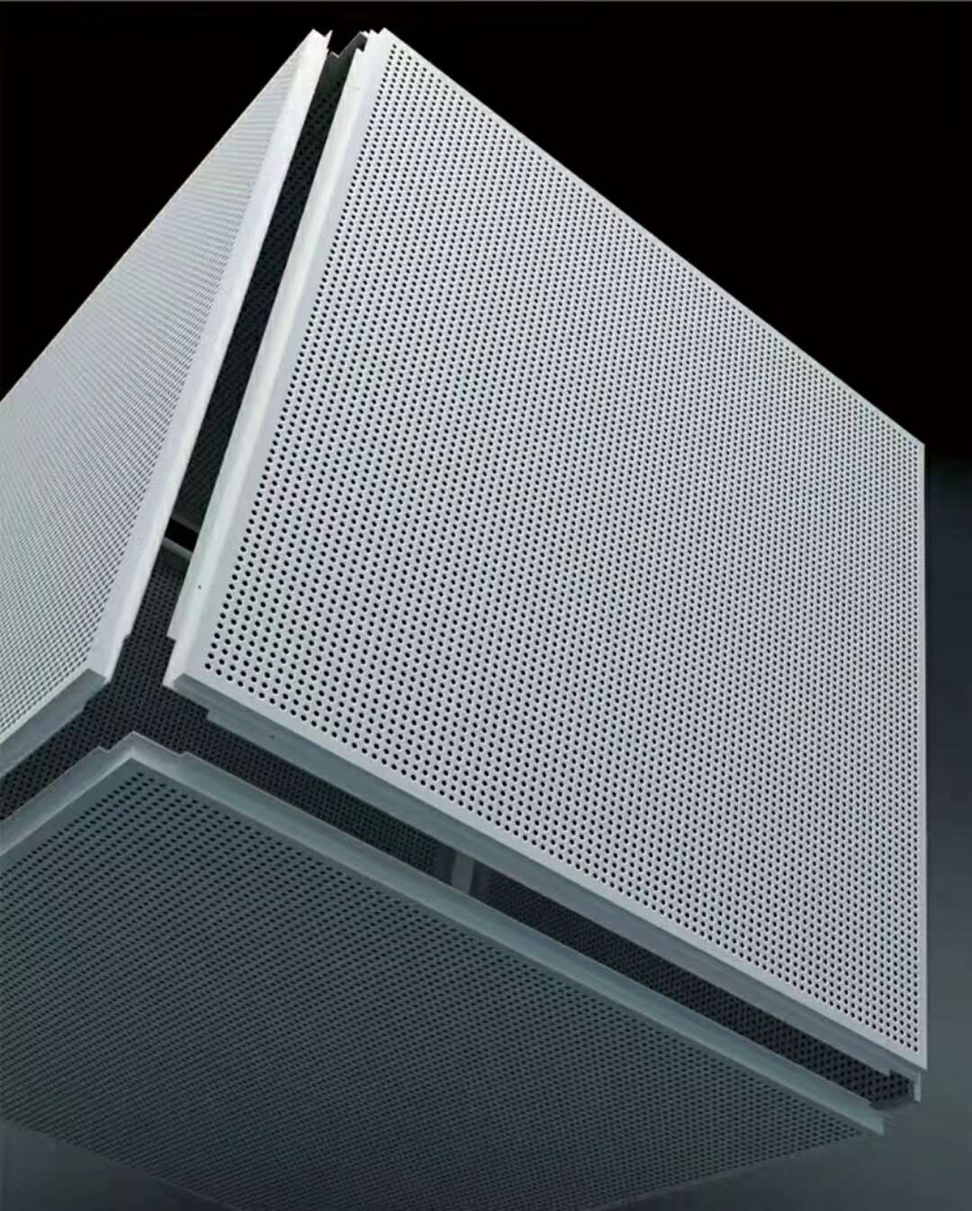 億萊暗骨方型扣板天花吊頂系統由裝飾面板、主副龍骨以及相關配件共同構成。裝飾面板為方形塊狀,采用鋁合金制造。扣板表面涂層一般選擇粉末靜電噴涂或聚脂漆噴涂、輥涂,也可選用拉絲和